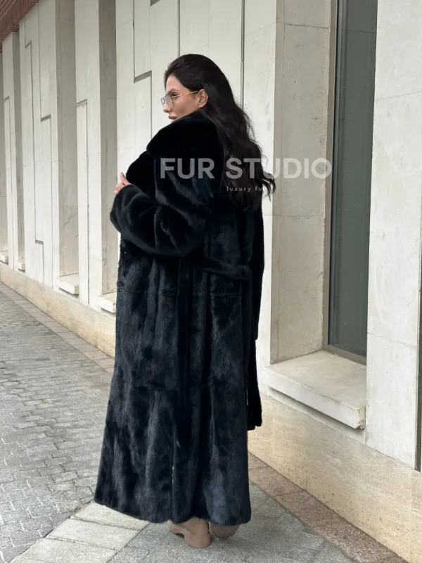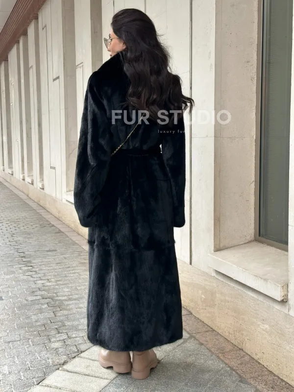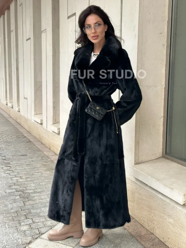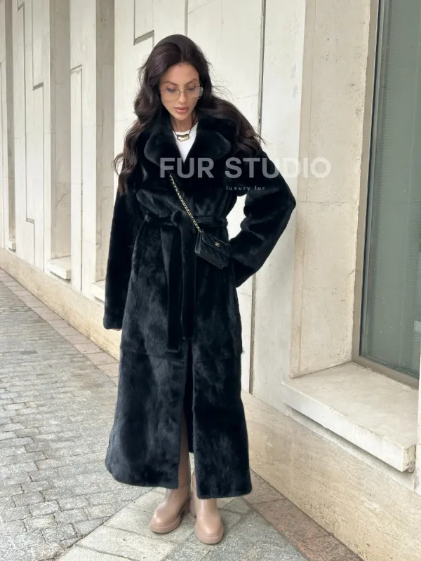 Черная норковая шуба NAFA MINK с поясом в пол доступна для покупки в нашем шоуруме Furs Studio в . У нас так же есть доставка во все города России. Добавьте немного роскоши в свой гардероб с этой шубой, которая будет служить вам многие годы.
