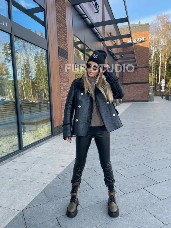 Воротник стойка защитит шею от непогоды и подчеркнет ее изгибы. Черный цвет отлично сочетается с любым оттенком волос и глаз владелицы. Добавьте к образу неординарную сумку и грубую обувь - ваш look будет гармоничен. Купить дубленку из натуральной овчины в стиле милитари могут девушки, которые любят выглядеть экстраординарно и не боятся экспериментировать.