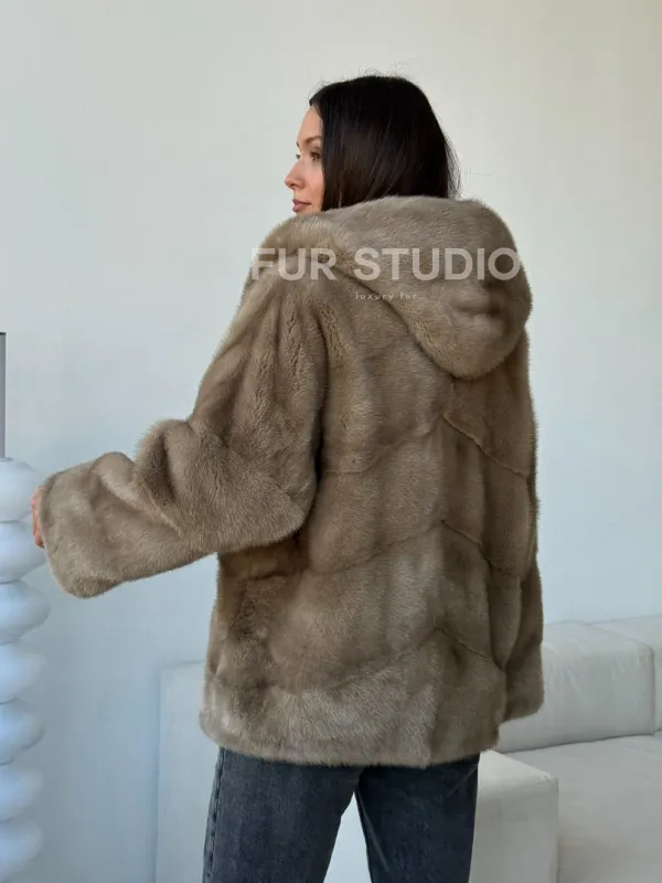 Короткая норковая шуба с капюшоном 102498