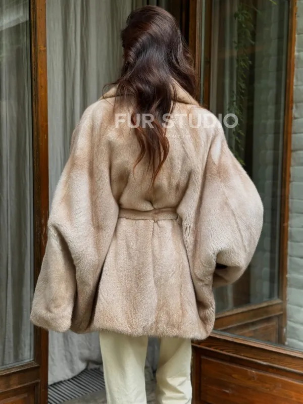 Мех данной шубы аукционная норка , цвет бежевый. Предлагается в размерах от 42 до 56 (oversize). Длина модели 75-80 см, что выгодно подчеркивает фигуру девушек. Эта модель идеально подойдет для девушек и женщин, предпочитающих роскошные натуральные меха.
