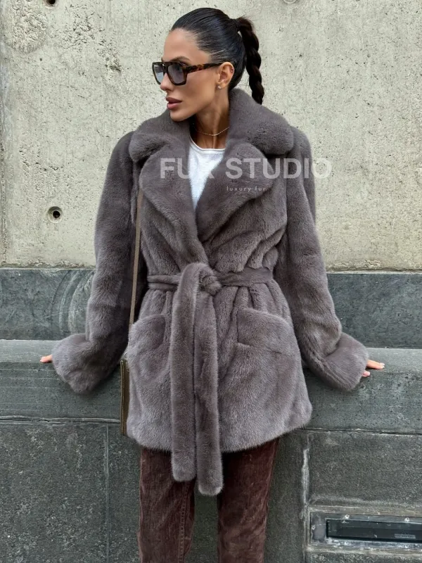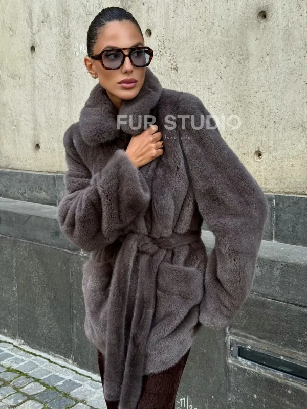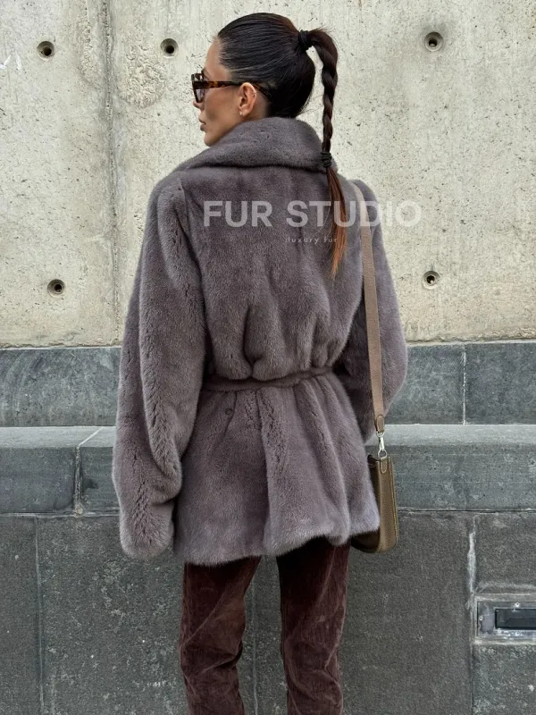 Норковая шуба лавандового цвета - VELVET 102110