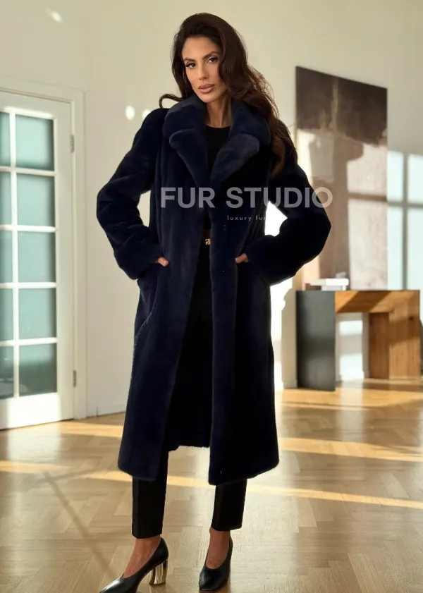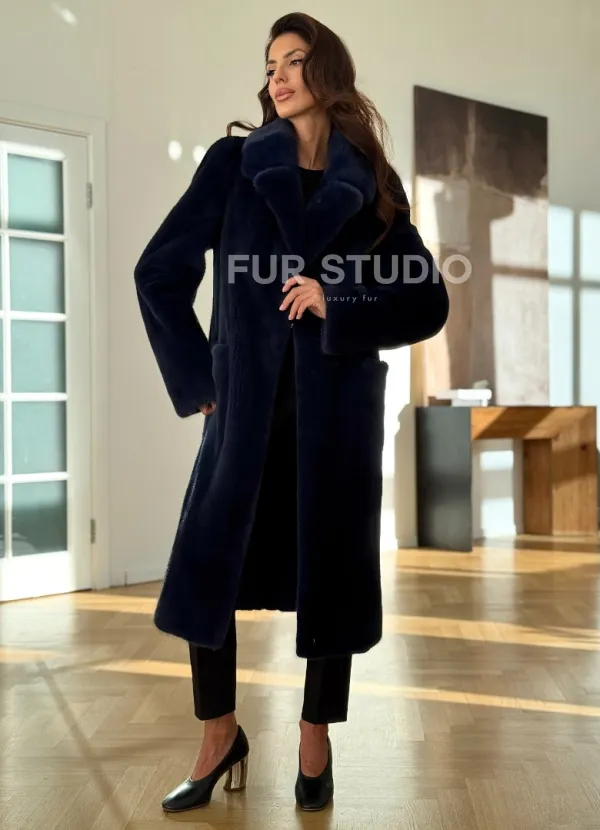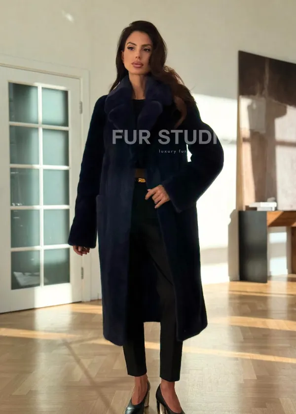 Норковая шуба темно-синего цвета 102315