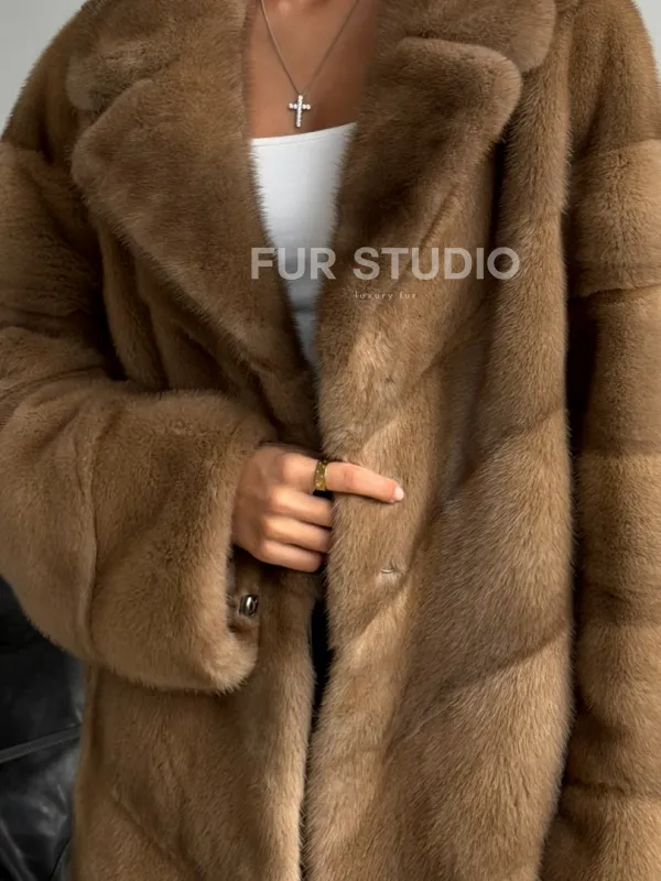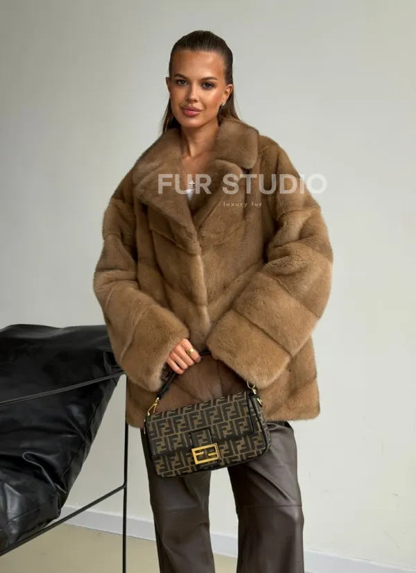Мех данной шубы аукционная норка, цвет бежевый. Предлагается в размерах от 42 до 44. Длина модели 70-75 см, что выгодно подчеркивает фигуру девушек. Эта модель идеально подойдет для девушек и женщин, предпочитающих роскошные натуральные меха.