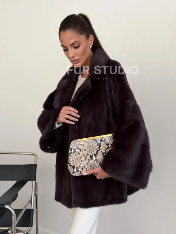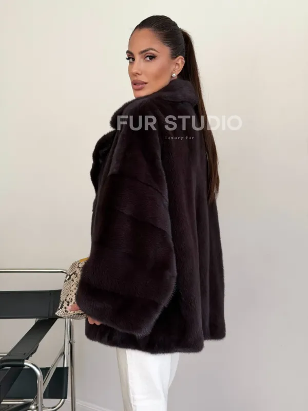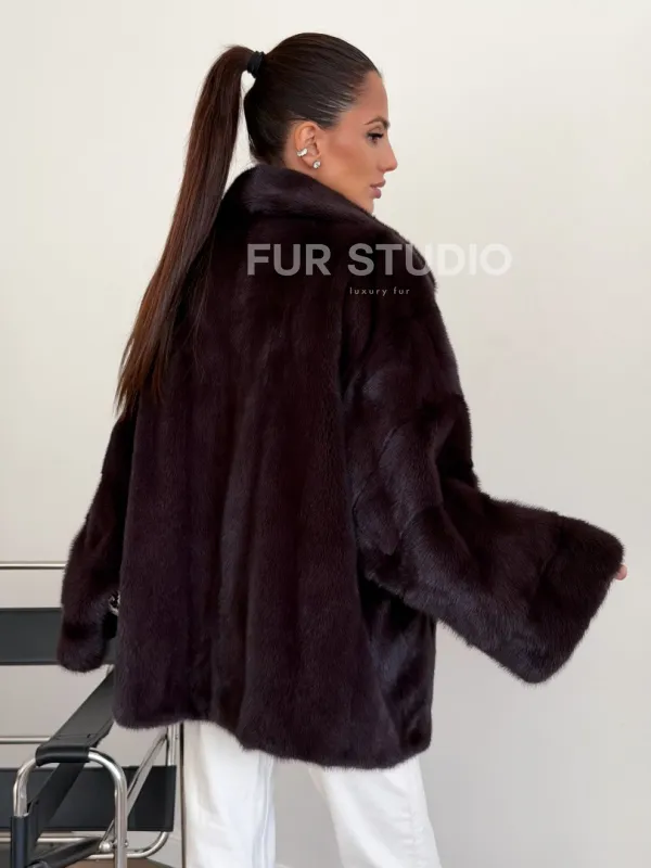 Норковый полушубок - цвет инжир 102634
