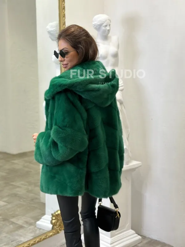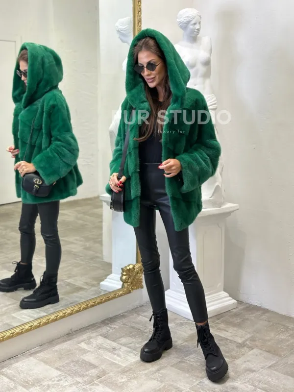 Норковый полушубок с капюшоном - цвет изумруд доступна для покупки в нашем шоуруме Furs Studio в . У нас так же есть доставка во все города России. Добавьте немного роскоши в свой гардероб с этой шубой, которая будет служить вам многие годы.