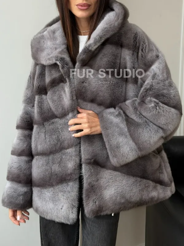 Норковый полушубок с капюшоном - цвет Platinum 102567