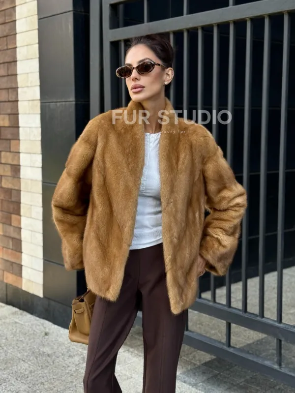 Норковый жакет Gold воротник V-образный 102229