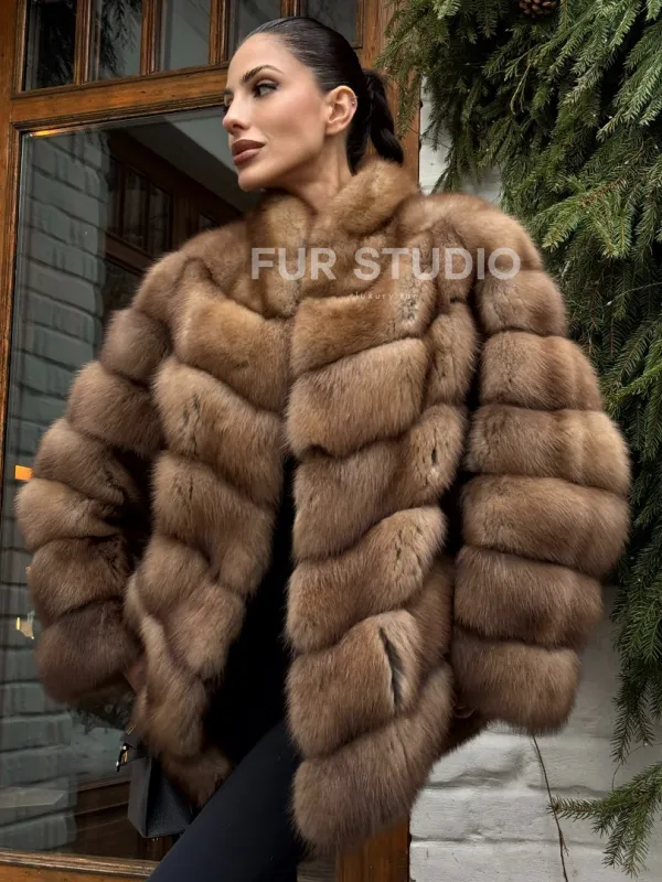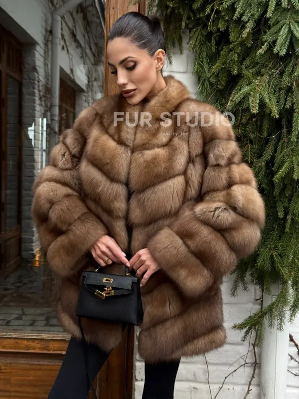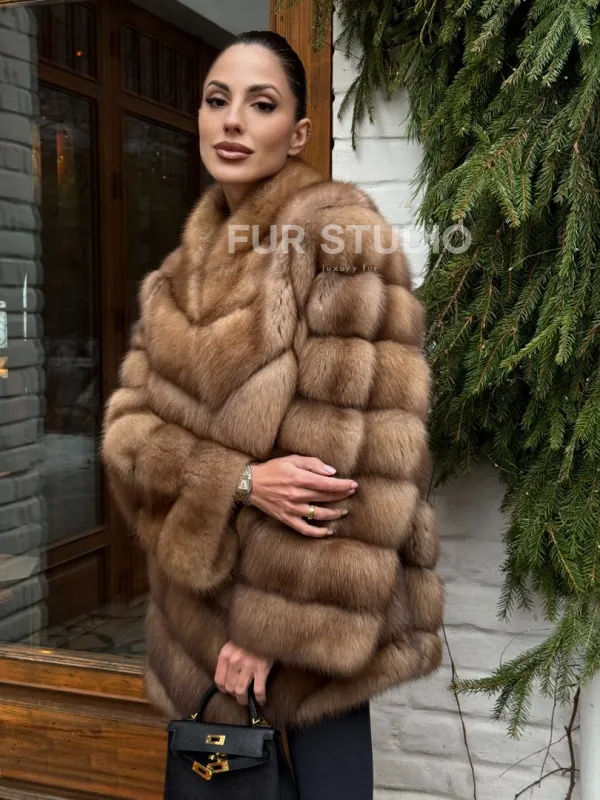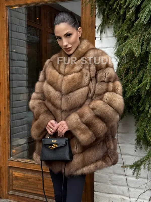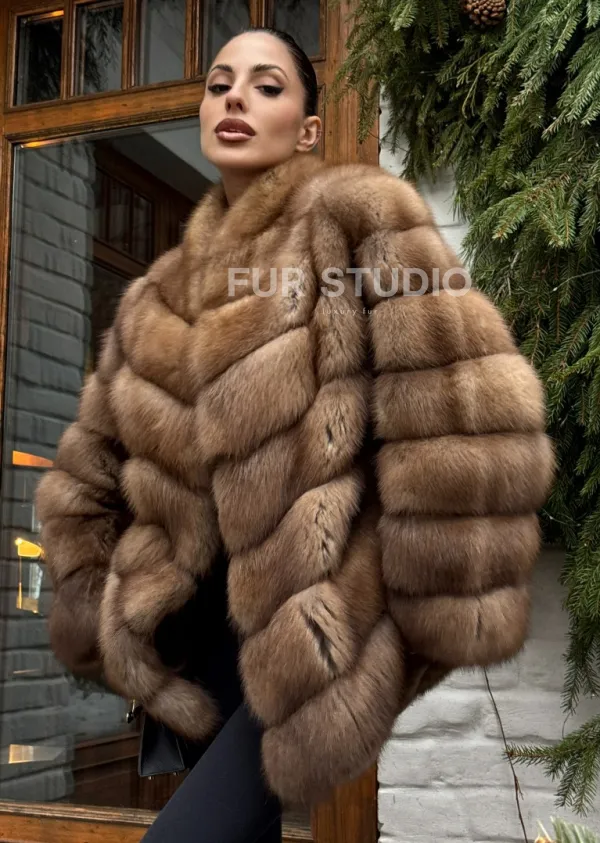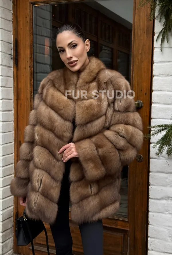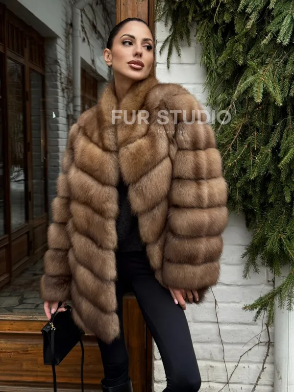 Полушубок из куницы с воротником V-образным доступна для покупки в нашем шоуруме Furs Studio в . У нас так же есть доставка во все города России. Добавьте немного роскоши в свой гардероб с этой шубой, которая будет служить вам многие годы.