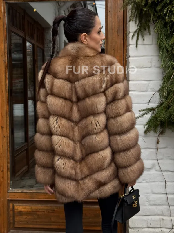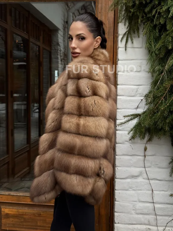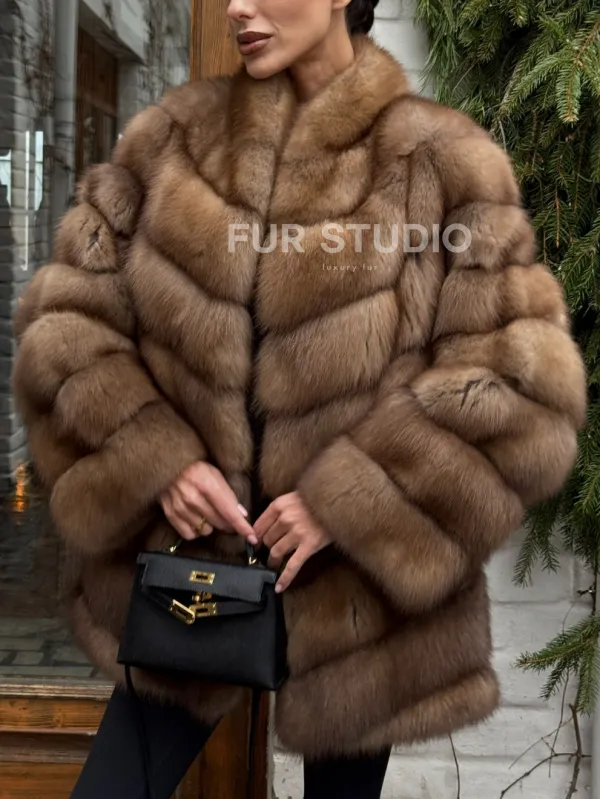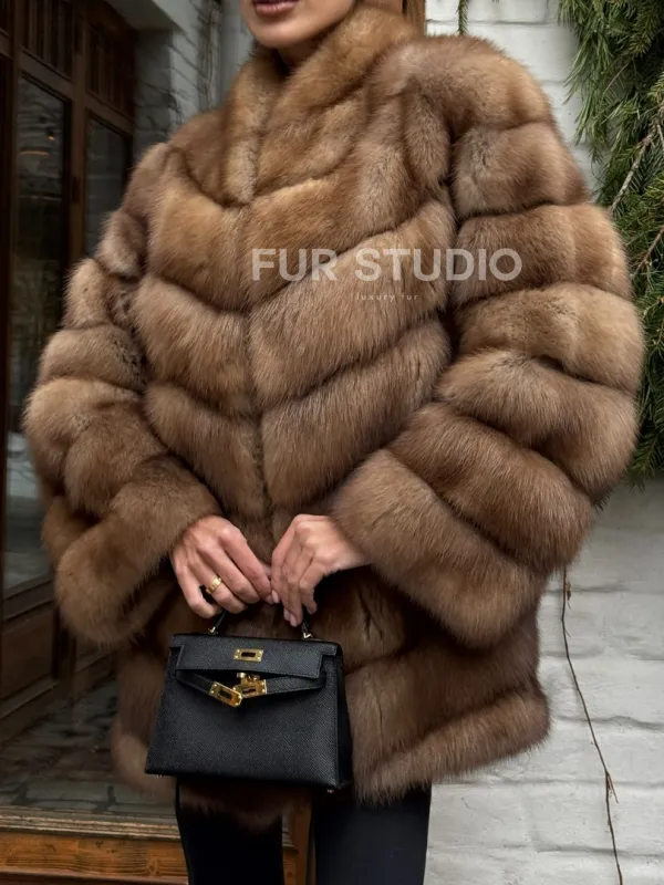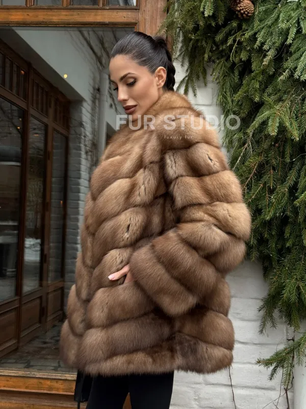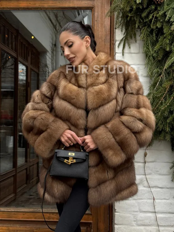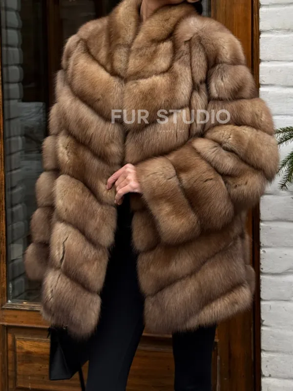 Полушубок из куницы с воротником V-образным доступна для покупки в нашем шоуруме Furs Studio в . У нас так же есть доставка во все города России. Добавьте немного роскоши в свой гардероб с этой шубой, которая будет служить вам многие годы.