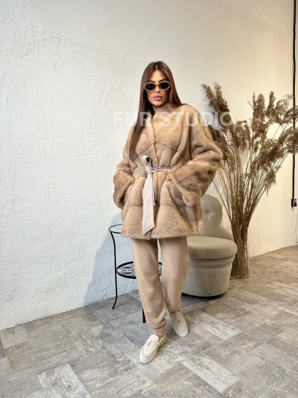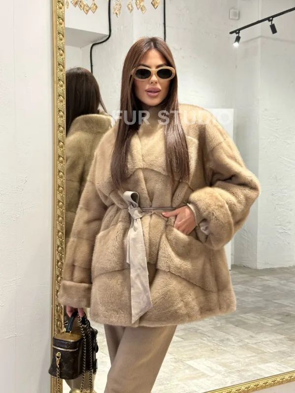 Полушубок из меха норки NAFA MINK в натуральном цвете пастель 100147