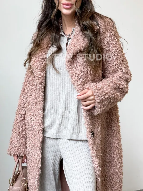 Шуба из экомеха в цвете пудра 100098
