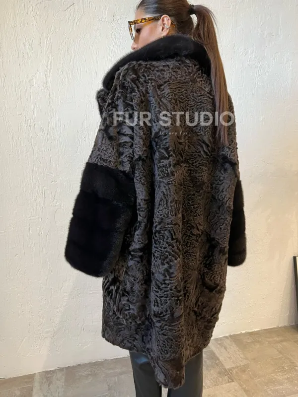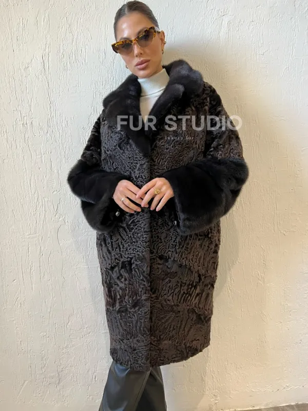 Шуба из каракульчи с отделкой из меха норки доступна для покупки в нашем шоуруме Furs Studio в . У нас так же есть доставка во все города России. Добавьте немного роскоши в свой гардероб с этой шубой, которая будет служить вам многие годы.