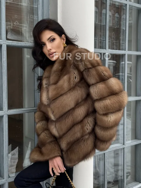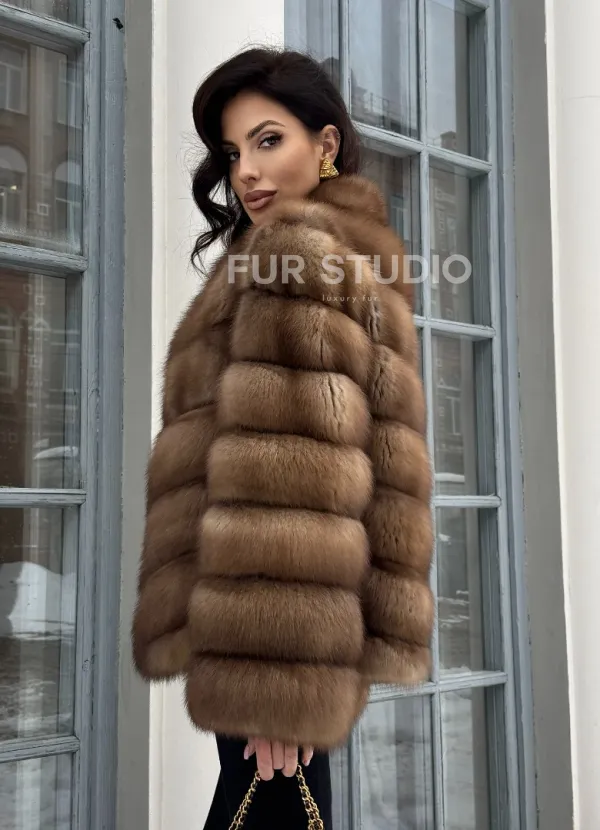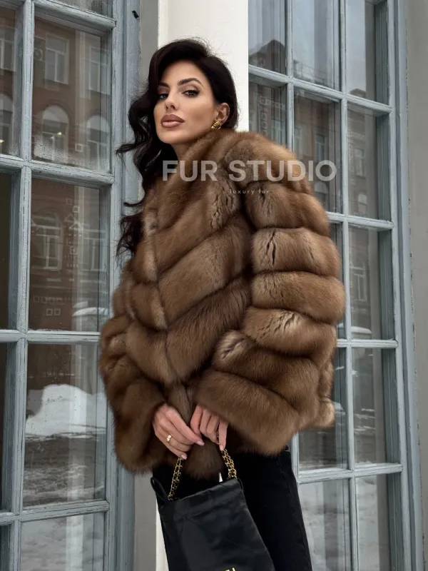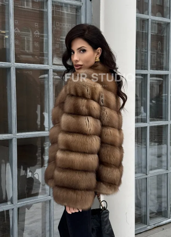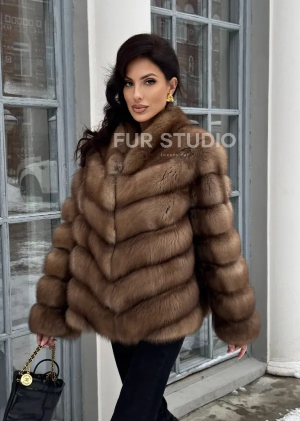 Шуба из меха куницы с V-образным воротником доступна для покупки в нашем шоуруме Furs Studio в . У нас так же есть доставка во все города России. Добавьте немного роскоши в свой гардероб с этой шубой, которая будет служить вам многие годы.