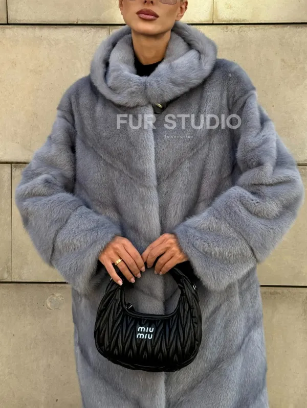 Шуба midi из меха норки с капюшоном, рукава трансформер 101059