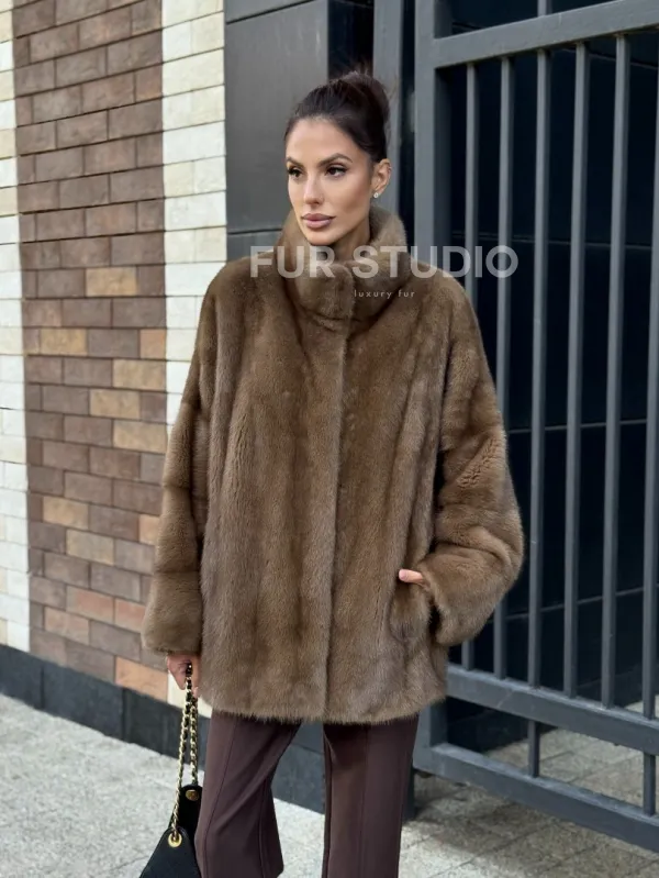 Шуба норковая пастель - стойка воротник 102235
