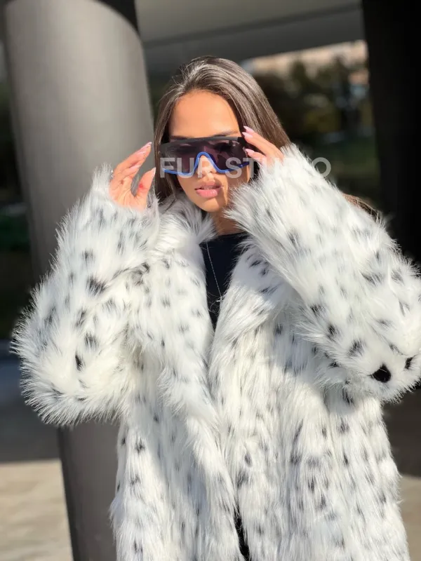 Удлиненная шуба из экомеха под рысь – выбор современных девушек, которые любят быть в тренде. Экомех смотрится роскошно и необычно. Он не требует особого ухода, а его качество будет радовать владелицу не один год. Удлиненная модель зрительно увеличивает рост и скрывает недостатки фигуры. Пояс подчеркивает изящество талии и создает силуэт «песочные часы».